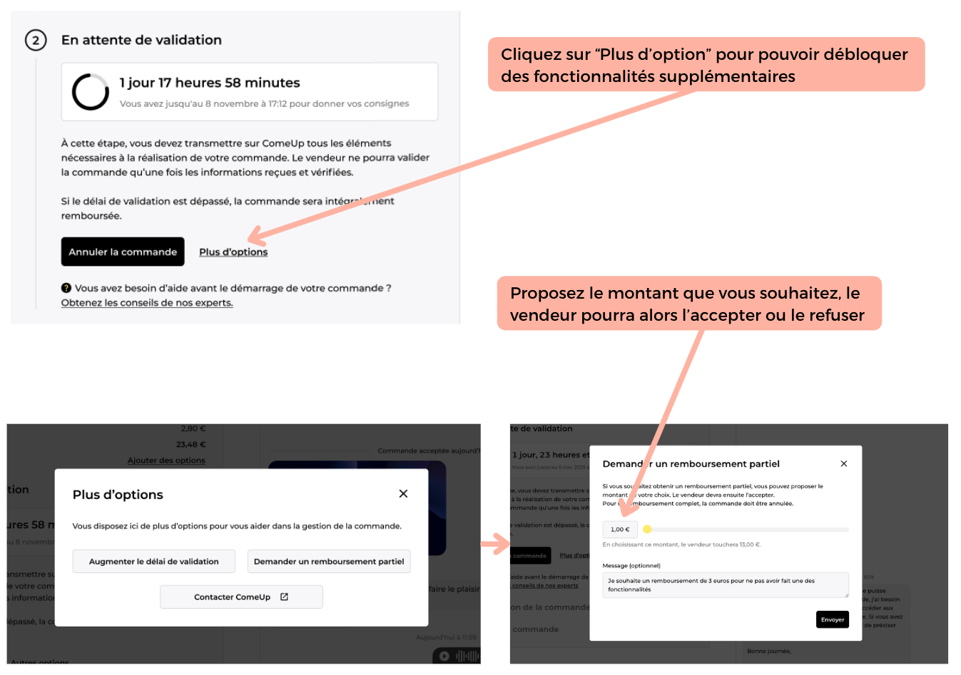 Vous pouvez proposer à votre vendeur un remboursement partiel à tout moment, tant que la commande n’est pas terminée.