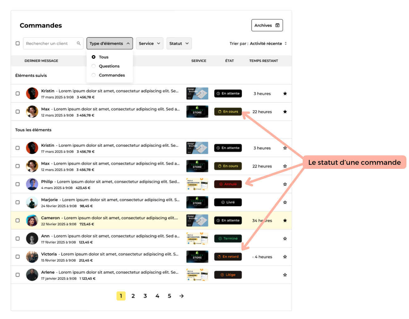 Quels sont les différents statuts d’une commande ?